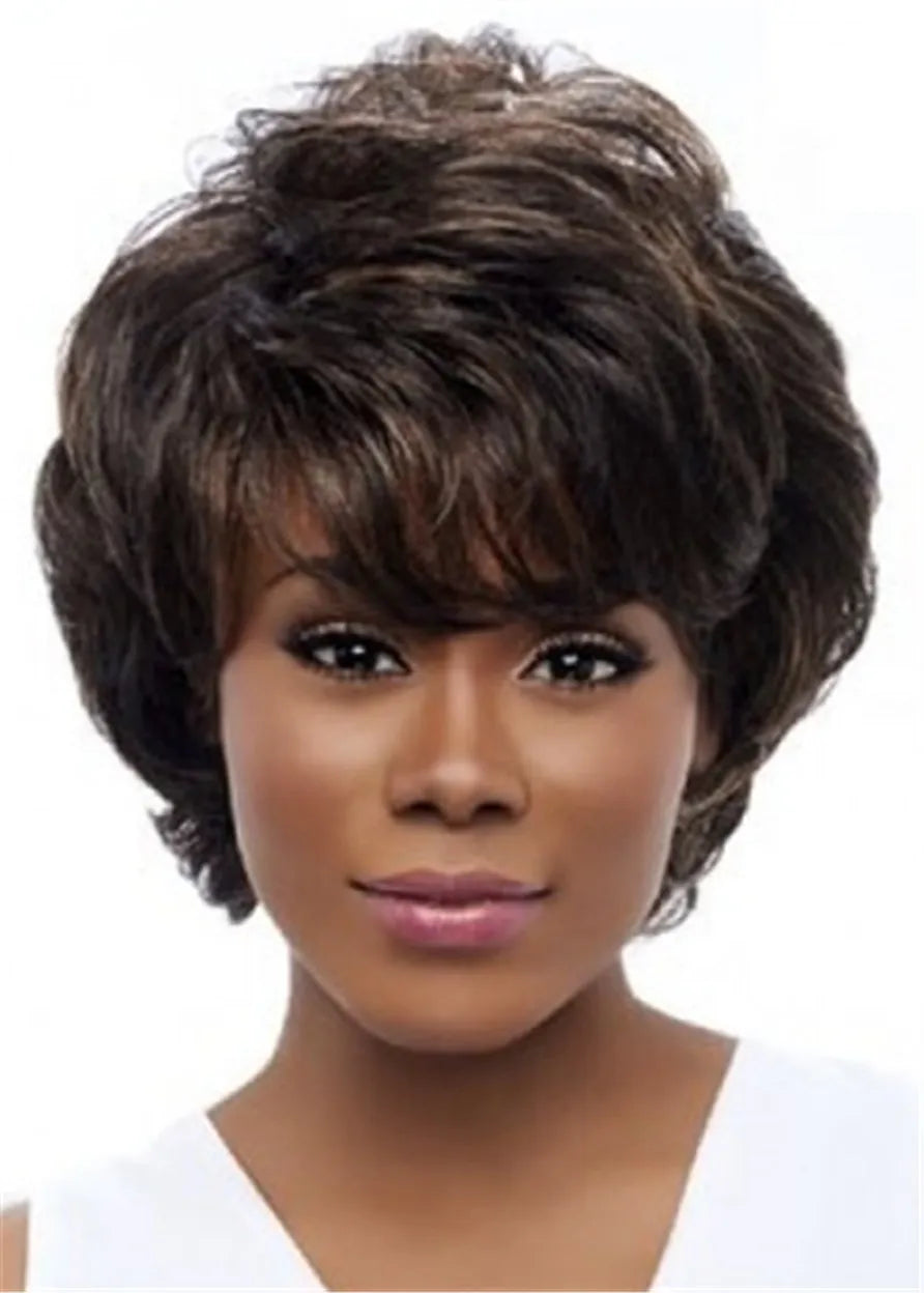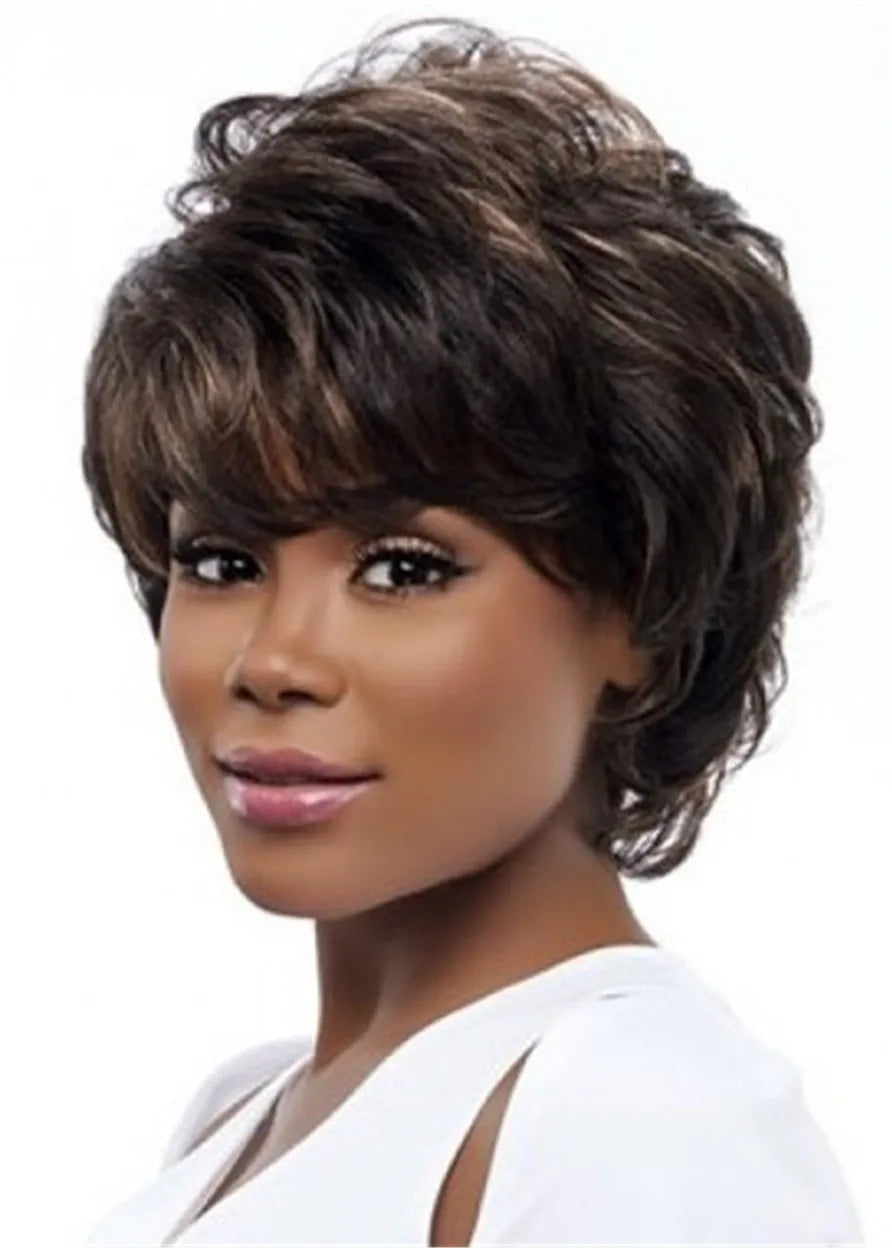 Short Wavy Layered Wig With Bangs For Black Women Capless 10 Inches