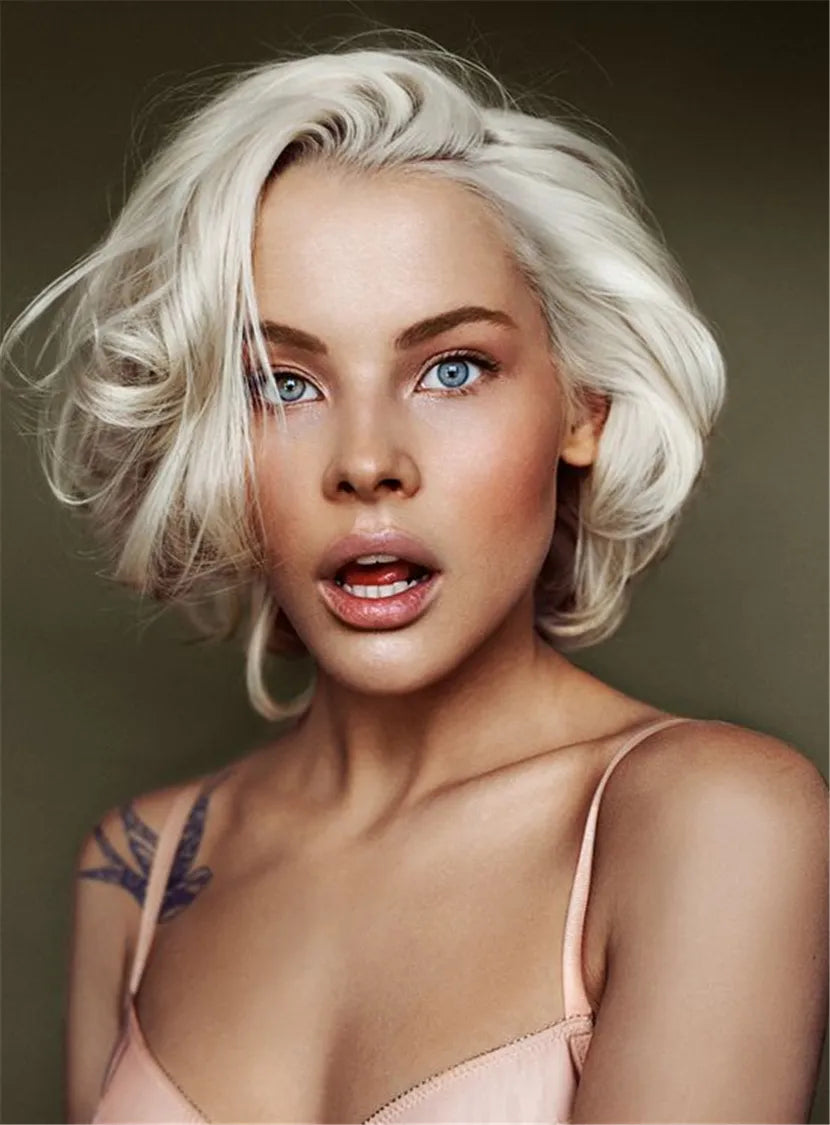 Silver Deep Wavy Synthetic African American Wigs Lace Front 10 Inches